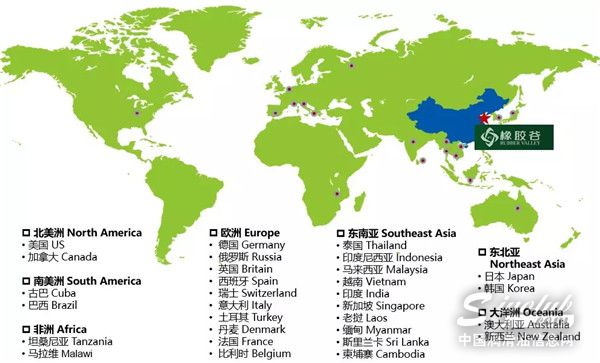 目前橡胶谷已建立亚、欧、美、非、大洋洲合作渠道,与韩国、美国、泰国、马来西亚、印度尼西亚、俄罗斯、非洲等国家、地区及国际组织建立多层次、紧密的合作。