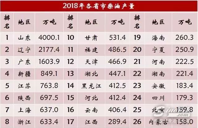 那么,在全国31个省市中,谁才是第一炼油大省呢?对于这个问题,只有从数据中寻找答案,不妨参考2018年各省市四大油品的最终产量。
