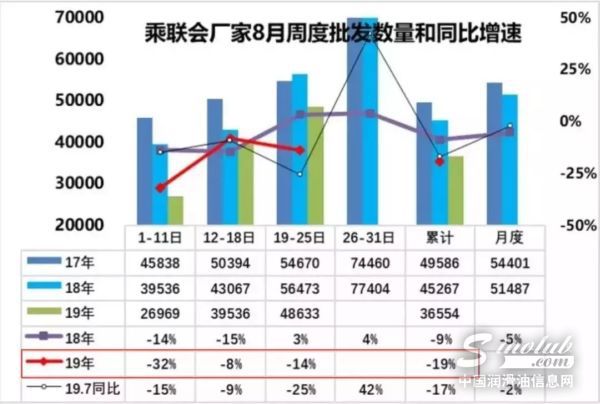值得注意的是,持续双位数跌幅下,8月前三个周期汽车零售量同比下降21%,如果第四周期未有有效改善,超20%的跌幅将成为2019年至今乘用车市场下跌幅度最大的月份。