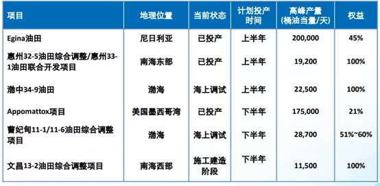 上半年,公司油气生产平稳运行,净产量达243.0百万桶油当量,同比增长2.1%。计划年内投产的6个新项目中,Egina油田、惠州32-5油田综合调整/惠州33-1油田联合开发项目和Appomattox项目已于上半年投产,其他项目积极推进。