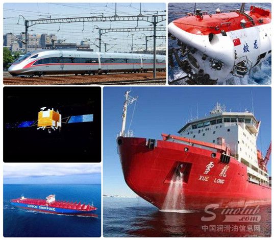 (复兴号、蛟龙号、雪龙号、嫦娥卫星、两万标箱级巨轮,近年来这些“大国重器”,均由中国润滑油企业提供润滑保障。)