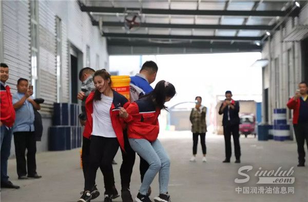 第二个项目是螃蟹背西瓜,这项活动主要考验团队协作能力,四人一组运送润滑油桶,这项运动活动量大,人员要求紧密度高,最终以张国恩带领的润滑油生产班组以无差错的成绩获得冠军;