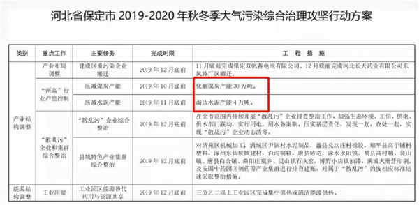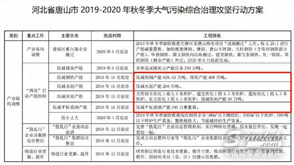 根据细分任务统计:2019年12月底前,河北省钢铁减产1400万吨,焦炭减产300万吨,平板玻璃减产660万重量箱;山西省钢铁减产175万吨,焦炭减产1000万吨;山东省焦化减产1031万吨……