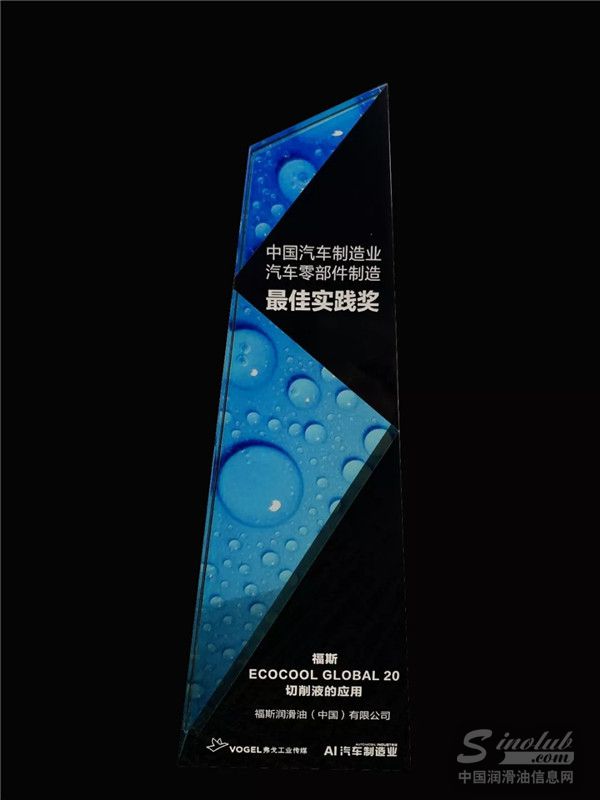 会议同期还进行AI《汽车制造业》中国汽车制造业“最佳实践”评选活动颁奖典礼,福斯环保水溶性切削液ECOCOOL GLOBAL 20荣获大会颁发的“中国汽车制造业汽车零部件制造最佳实践奖”。