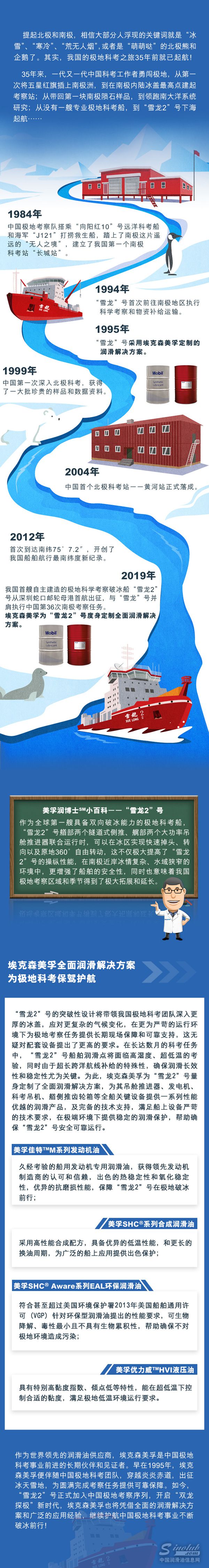 · 美孚佳特TM M系列发动机油:久经考验的船用发动机专用润滑油,获得领先发动机制造商的认可和信赖,出色的热稳定性和氧化稳定性,优异的抗磨损性能,帮助保障“雪龙2”号在极地破冰前行;