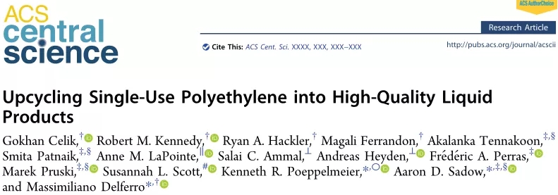 近日,来自西北大学、阿贡国家实验室和埃姆斯实验室的研究团队,已经开发出一种新方法,可以将大量看似低价值的塑料升级为高质量的液体产品,比如机油、润滑油、洗涤剂甚至化妆品。这一发现还改进了现有的回收方法,从而生产出廉价、低质量的塑料产品。该研究成果以题为“Upcycling Single-Use Polyethylene into High-Quality Liquid Products”的论文发表在国际顶级期刊ACS Central Science上(见原文链接)。