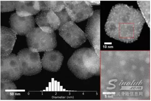 在本研究中,高能量聚乙烯(PE)大分子通过原子层沉积在SrTiO3钙钛矿纳米晶上的分散良好的Pt纳米颗粒(NPs)催化氢化反应转化为增值产品。该催化剂由两纳米大小的铂纳米颗粒组成,沉积在大约50-60纳米大小的钙钛矿纳米晶上。该团队选择钙钛矿是因为它在高温高压下很稳定,是一种非常好的能量转换材料。为了将纳米颗粒沉积在纳米管上,研究小组使用了原子层沉积技术,这种技术是在Argonne开发的,可以精确控制纳米颗粒。