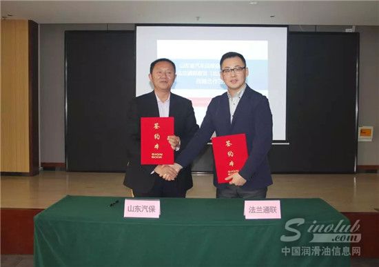 山东省汽车保修设备行业协会会长侯念湖先生与法兰通联展览(北京)有限公司总经理王旭先生共同签署战略合作协议。