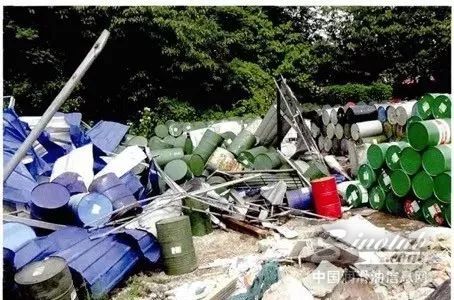 现场查获的大量非法处置废旧包装桶