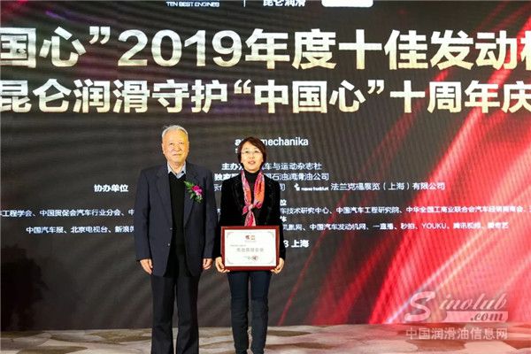 科技部新能源汽车重大专项专家、“中国心”年度十佳发动机评选评委会名誉主任王秉刚为昆仑润滑颁发“杰出贡献企业”奖。王秉刚表示:“十年磨一剑,我是昆仑润滑与‘中国心’十年牵手的见证人,见证了大家一起风雨同行,共同为汽车行业造‘心’,一起推动中国汽车发动机技术的不断进步。”