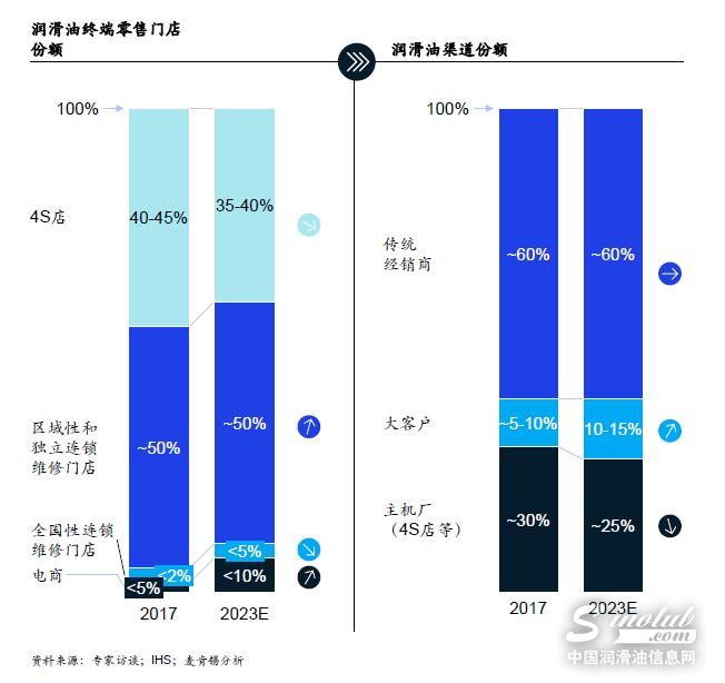 图2 后市场总体终端零售门店的格局预计未来将保持相对稳定,而各类型销售渠道中传统的经销商将仍然是最