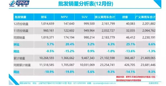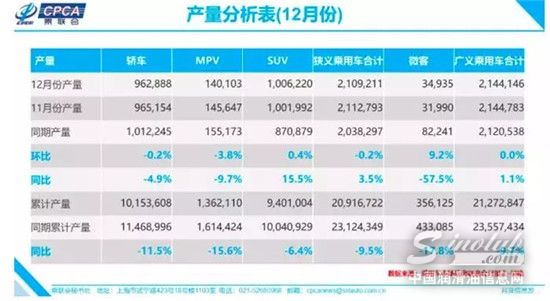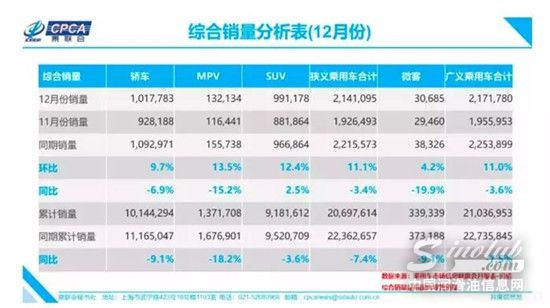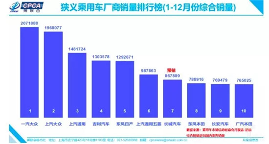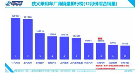 (狭义乘用车厂商12月综合销量排行榜)