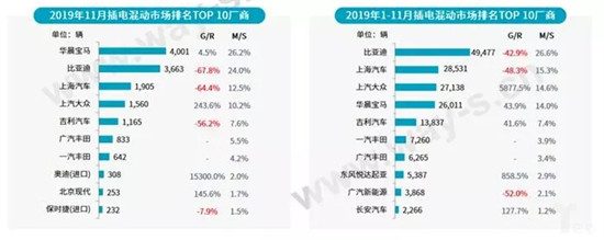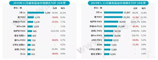 从插电混动市场车型销量来看,11月,华晨宝马5系Le继续领跑榜首;自主品牌比亚迪、荣威的车型发力追赶,排名上升;其他合资车型表现乏力,排名靠后。1-11月,5系Le累计销量赶超唐PHEV,唐 PHEV销量同比出现下滑。