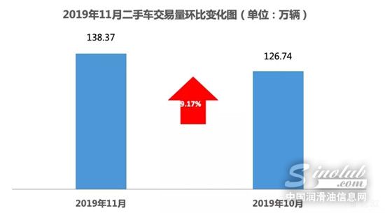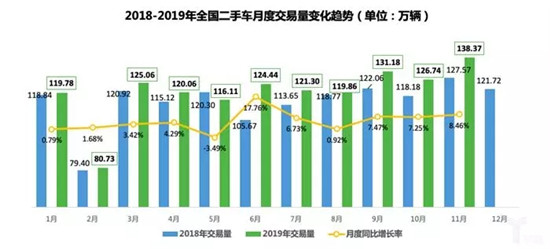 11月二手车交易量138.37万辆,环比增长9.17%