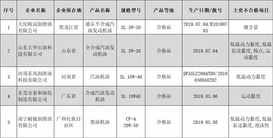 发动机润滑油产品质量国家监督 抽查不合格产品及企业名单