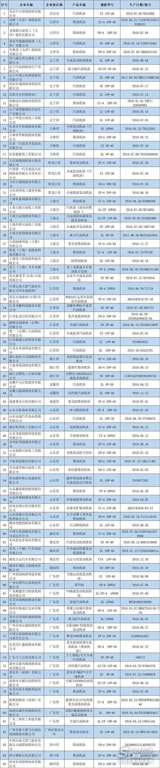 发动机润滑油产品质量国家监督 抽查合格产品及企业名单