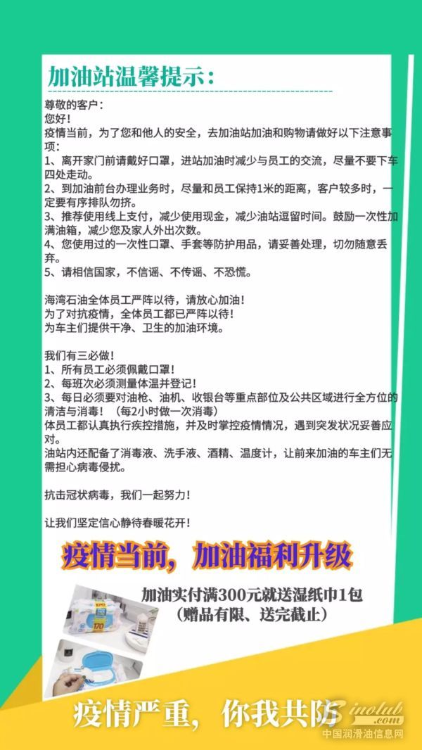 疫情严峻,海湾石油全体员工毅然放弃休假站在工作的第一线为您提供优质服务。为爱续航、为车洗礼。