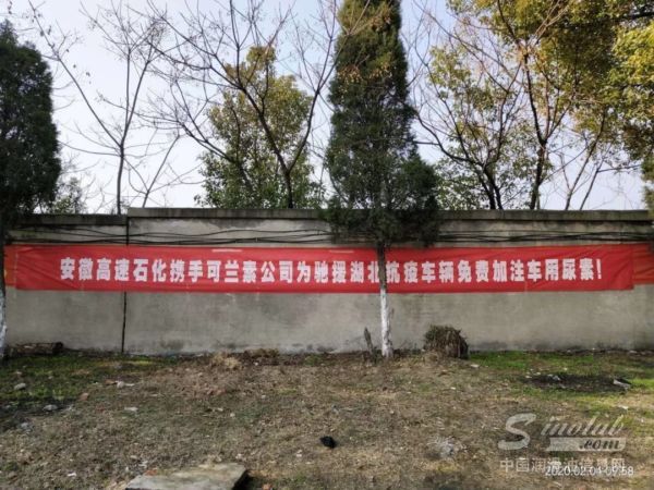 自2月4日起,可兰素联合安徽高速石化、湖北中海油、江苏高速石油,在部分加油站为支援湖北抗疫的物资运输车辆,免费提供可兰素车用尿素,为共同打赢这场战争贡献力量!