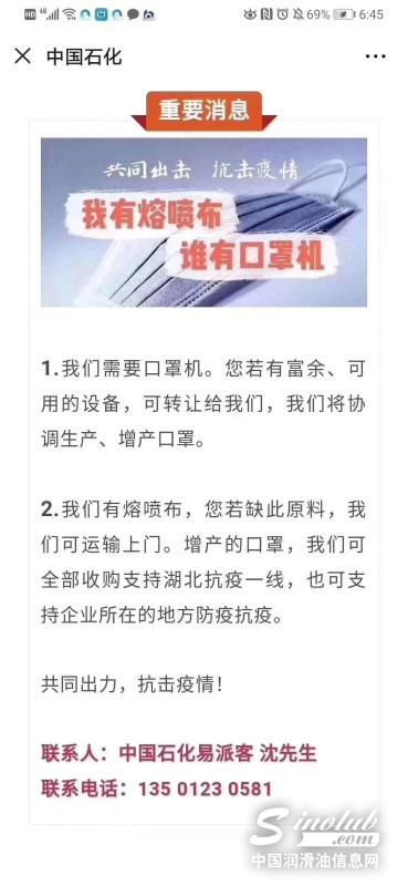 值得欣喜的是,这段期间,我们在为中国石化对接口罩紧俏原料熔喷布供应、口罩机购买,以及行业企业的疫情防控物资采购、捐赠方式和渠道提供了有益的建议,发挥了主流媒体平台资源的作用。