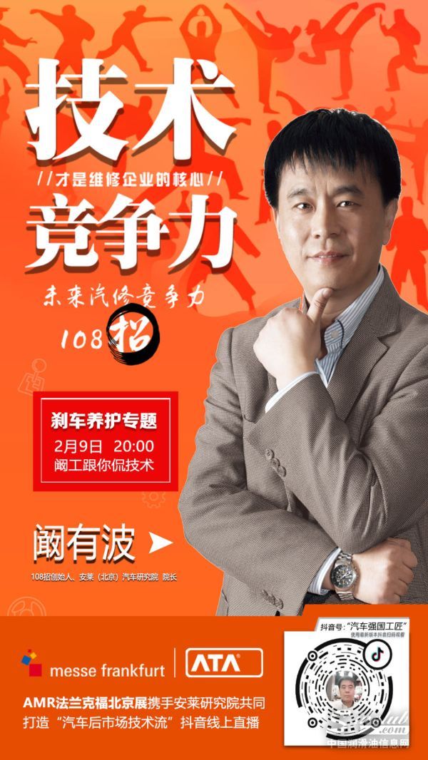2月9日晚8点!明天明天明天!Lubtop2019总评榜的联合主办方法兰通联AMR携手安莱研究院,共同打造“汽车后市场技术流”!抖音首播,反响热烈!明晚八点,精彩继续【进入抖音搜索“汽车强国工匠”】2月9日20:00 阚工跟你侃技术!刹车养护妙招儿,进店转化爆发点,立学立赚,欢迎围观!