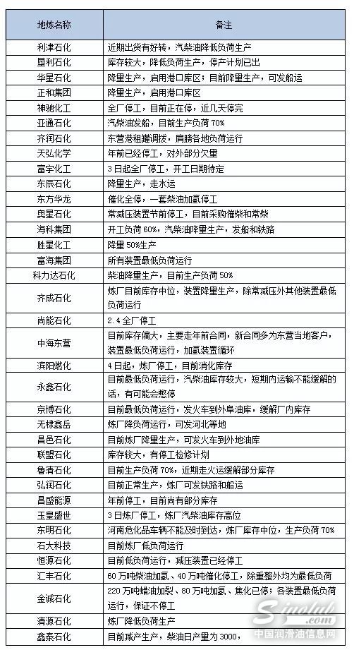 华东地区:区内炼厂减产运行,降量幅度约为20%;
