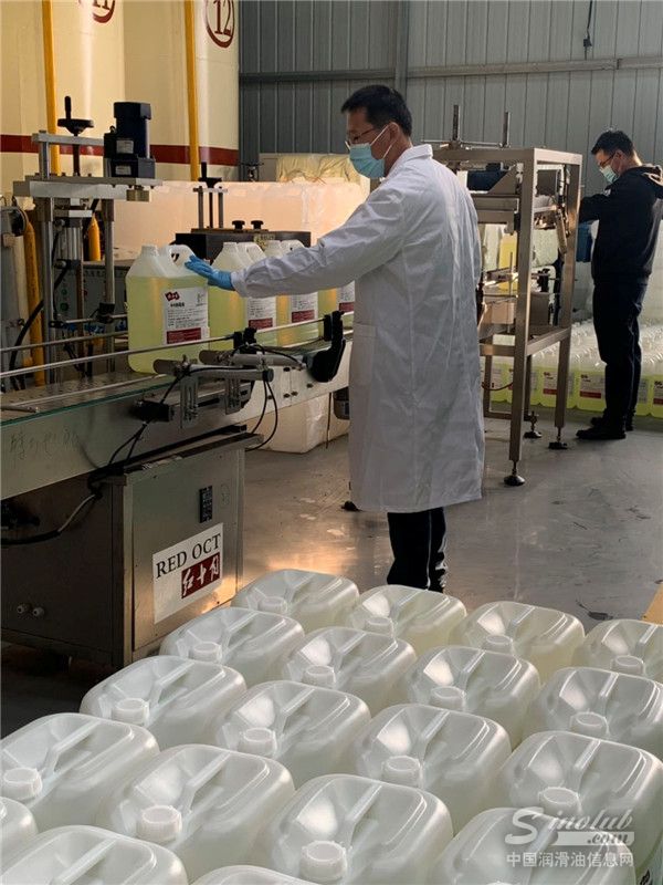 疫情当前,以润滑油研发、生产、销售为主业的陕西红十月发展有限公司,积极响应政府号召,快速转型生产,在取得《消毒产品生产企业卫生许可证》后,将闲置的生产线改造,加班加点,以最快的时间生产出合格的消毒液产品,平价供应市场,解决了防疫物资缺少的问题。