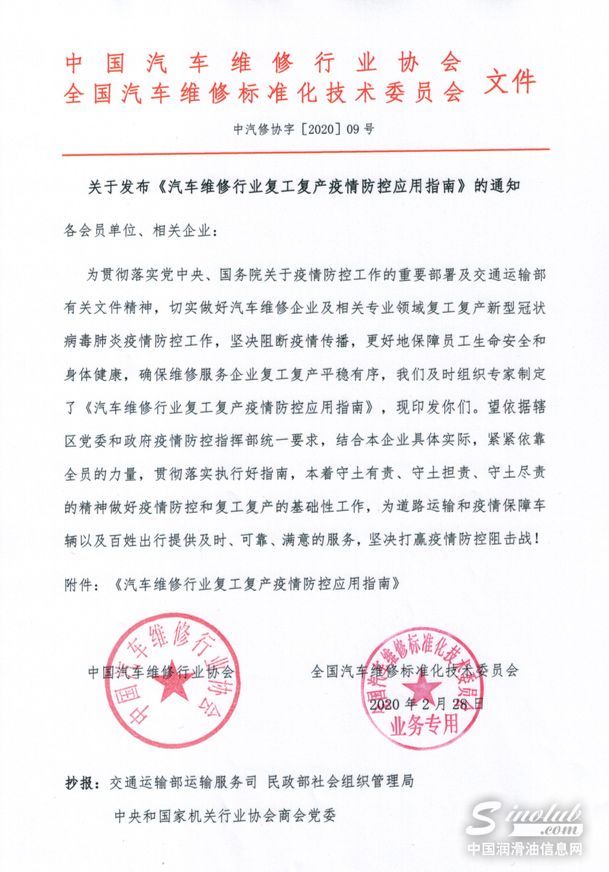 根据国务院联防联控机制《关于切实加强疫情科学防控有序做好企业复工复产工作的通知》及交通运输部有关文件精神,为落实疫情防控及有序复工复产的要求,中国汽车维修行业协会与全国汽车维修标准化技术委员会合作,由中国汽车维修行业协会技术和标准化委员会具体承担《汽车维修行业复工复产疫情防控应用指南》编写工作。