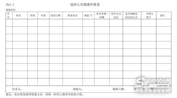 3.2.2企业应摸清员工健康状况,按照来源地风险等级实施分类管控,返岗人员应填写《健康申报表》,并承诺所申报信息属实。企业应按照当地疫情防控要求,对来自或去过疫情重点地区或与该区域人员有密切接触的员工,企业负责人须向所在地卫生健康部门报告,并备案观察,期间不得安排与其他职工进行接触,排除疫情后方可返岗工作。