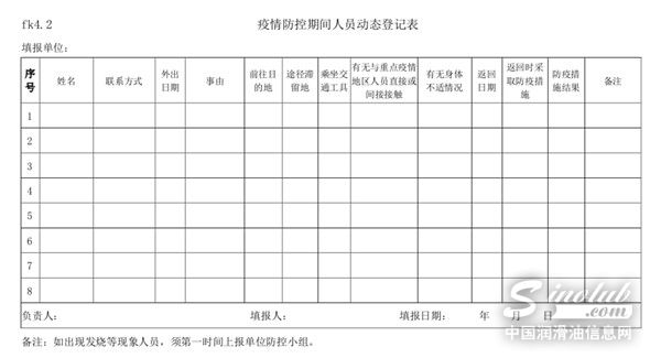 3.2.8企业应及时了解疫情期间人员动态,填写《疫情期间人员动态登记表》。