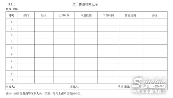 3.3.1企业应按照当地疫情防控要求,做好返岗员工的体温监测和日常观察。应在厂区入口处设置体温检测和消毒岗位,严格做好返岗员工的每日体温监测和日常观察,并做好《员工体温检测记录》,体温正常(37.3°C以下)方可进入厂区。