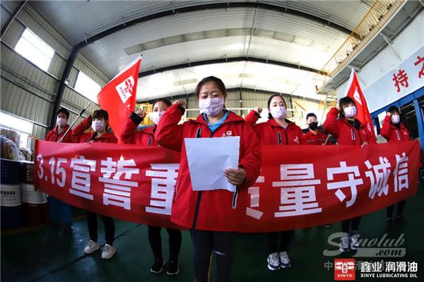 众所周知,3月15日是“国际消费者权益日”。在这深入民心的日子,为了宣扬诚信生产经营的宗旨,营造健康的诚信商业氛围,树立起“感谢国家平台,成就企业名牌”的战略思维,推动润滑油行业规范化的发展,鑫业润滑油特意举行了隆重的诚信宣誓大会。
