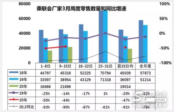 据乘联会3月19日发布数据,今年2月的最后一周零售同比下降61%,3月第一周同比下降50%、第二周同比下降44%,不仅同比降速放缓,环比也已在平稳改善,3月第二周日均零售乘用车辆数21,696辆,相较于第一周的16,666辆,环比增长30.18%。