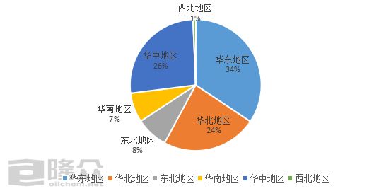 其中华东、华中、华北地区因复工复产的企业较多,用油量占比最大,分别为34%、26%、24%。