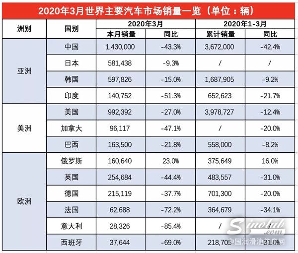从具体各地表现来看,亚洲地区的中国因为受疫情冲击最早,为此国家出台相应的抗疫管控,使得国内生产及消费层面均受到限制。尽管3月市场有所恢复,但疫情所带来的的隐患仍然持续,即便在更多政策扶持下市场回暖仍不算理想。据中汽协最新公布的数据显示,3月我国汽车销量为143万辆,同比下滑43.3%;今年一季度累计销量为367.2万辆,同比下滑42.4%。