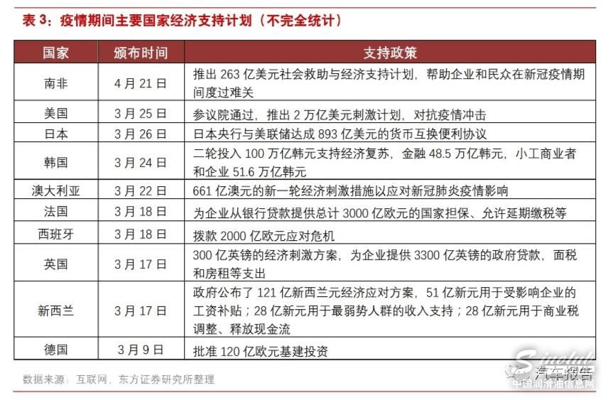 疫情对产业链的影响不仅仅是供给端,需求端在全球经济面临压力的情况下也将有一定的缩水,这也是各国在疫情爆发之后第一时间发布经济刺激计划和救助计划。G20特别峰会也启动5万亿美元经济刺激计划,不惜一切代价的采用所有可行的政策工具,将新冠病毒大流行对全球经济和社会的损害降到最低。随着各项政策落实以及疫情进入后半程,我们认为各国的刺激政策将对未来2-3年内的经济产生积极影响,从而拉动社会总需求持续释放。新能源汽车作为极具发展潜力的行业将直接或间接受益。