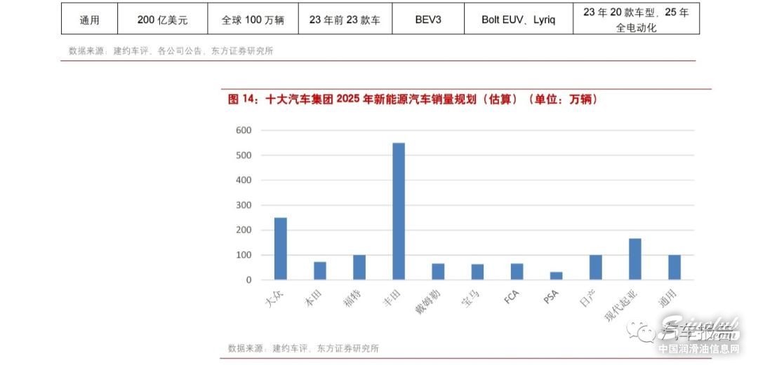 传统车企统一将2020年作为战略转型元年,体现出对电动化趋势的认可和积极跟进。十家主流汽车集团中,大众、福特、戴勒姆、FCA、现代起亚和通用公布了具体投资额,合计超过1700亿美元(折合人民币1.24万亿元),是当前新能源汽车产业链总产值的2倍。而十大汽车集团2025年规划的新能源汽车总销量超过1500万辆,其中丰田集团规划最高为550万辆。我们认为传统车企庞大资金和车型规划为新能源汽车产业链赋予广阔的长期成长空间,结合传统车企多年技术底蕴,预计在5-10年后,将再度成为新能源汽车市场的主力军。
