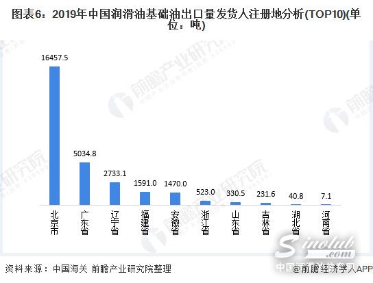 3、2019年北京市的润滑油基础油出口量位列全国首位