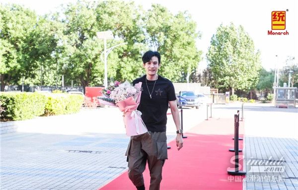 统一粉丝团代表为经超献花,现场氛围十分热烈。走在红毯上意气风发的经超,已然成为统一今天最亮丽的风景。