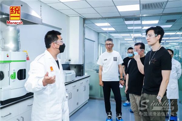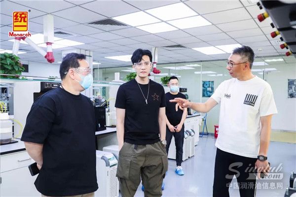 《燃烧》剧组在统一石化CEO李嘉、市场总监吴琦的陪同下参观统一T-Lab润滑科技实验室。李总对润滑油科技的介绍,生动而风趣,让经超等剧组主创听得聚精会神。