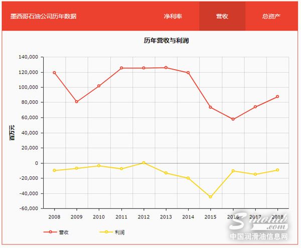 另外,Pemex亏损也不是一天两天了。2019年,Pemex亏损达184亿美元,约合1200多亿人民币。从2008年到2019年这十多年里面,Pemex几乎年年亏损,仅在2012年国际油价在90多美元的时候,实现了一亿美元多点的微弱盈利。