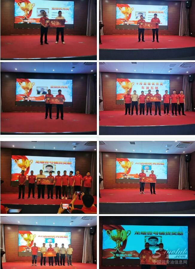 大会共颁发了龙蟠1号铺货奖励、龙蟠智尊A2活动优秀奖励、6月业绩优秀奖、业绩优秀奖四个奖项。其中车油五部获得6月业绩优秀奖。在此,感谢这些优秀团队和个人在2020年上半年度的辛勤付出。