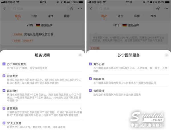 近日,苏宁国际联合中国人寿财产保险公司推出“进口机油保真险”,承诺消费者在平台上买到非正品,将“假一赔十”;如果因假机油导致车辆产生维修费用,最高赔付30万,5个工作日即可获赔。
