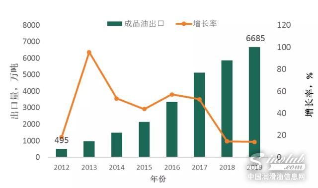 随着成品油市场需求增长放缓和供应过剩加剧,为消化国内过剩油品,我国成品油出口规模持续扩大,2019年出口量达6685万吨,比上年增长14%,成品油出口比例达到18%,出现石油大进大出局面。受全球经济低迷和新冠肺炎疫情影响,成品油出口情况不容乐观。