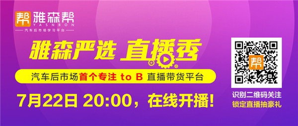 7月22日晚20:00,汽车后市场首个专注to B直播带货平台-雅森严选直播选首秀即将开播,严选后市场爆款好货,全网最低价,更有神秘带货官现场教授卖货技巧,实实在在解决门店选货卖货难题。