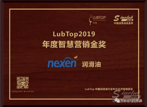 2020年7月20日,以“智创能效,赢领变革”为主题的“LubTop2019中国润滑油行业年度总评榜暨汽车后市场卓越者评选(云发布)颁奖典礼 ”通过中国润滑油信息网矩阵全媒体平台全网盛大发布。凭借2019年的强势表现,尼克森荣获“年度智慧营销金奖”这一奖项,备受行业瞩目。