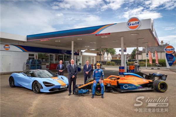 从2020年7月31日至8月2日F1英国大奖赛起,GULF海湾石油与迈凯伦F1世界一级方程式车队的合作正式开始,经典的GULF海湾石油橙蓝logo将融入到迈凯伦F1车队的所有赛事服装当中,这包含了车队的主力车手兰多·诺里斯(Lando Norris)与卡洛斯·塞恩斯(Carlos Sainz),以及车队的所有工作人员的赛事服装。同时,在迈凯伦MCL35 赛车的引擎盖和后视镜上你将会找到一个个醒目的GULF海湾石油的身影。