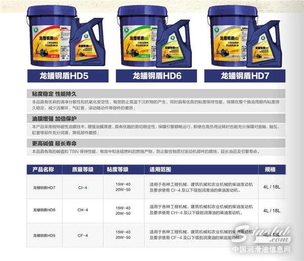 龙蟠钢盾工程机械专用油系列,是以进口基础油及特殊添加剂技术调制而成,专为非道路工程机械低速,高扭矩,高负荷的工作环境所研发,为各类非道路工程机械提供专业,加倍,持久的保护。