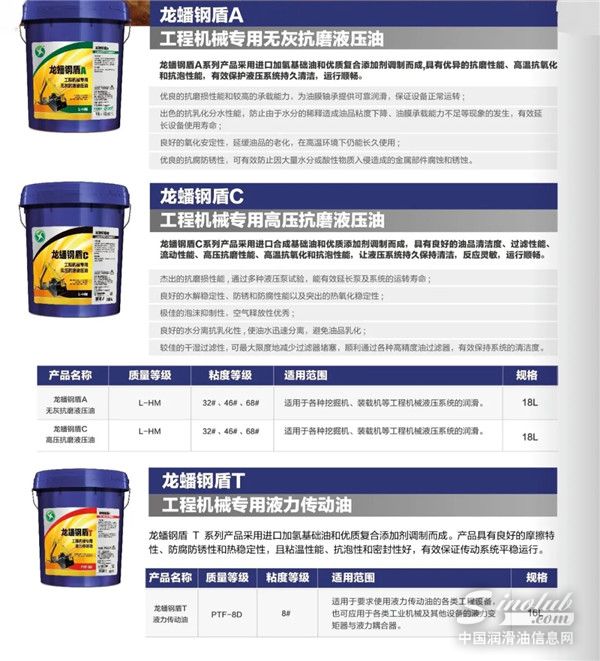 龙蟠深耕中国市场十余年,秉持“世界品牌,中国龙蟠”的精神潜心钻研润滑技术,持续紧跟市场环境需求,为企业赋能增效,实现更高的效率、更低的能耗和更佳的环境友好性。龙蟠钢盾工程机械抗磨液压油、液力传动油和齿轮油,不仅在维持设备正常运行、延长换油周期方面具有出色的表现,在减少停机时间和提高效率的同时,还为机器设备提供更高等级的保护。