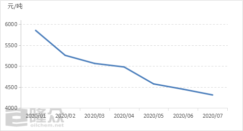 2020年上半年基础油市场一直呈现深度下滑格局,受多方利空影响,基础油价格一直并未探底,第二季度需求有短暂的向上修复,但弥补第一季度尚且不够。截止7月底,隆众统计国内基础油均价在4050元/吨,为历史低点,环比下调27%。隆众预计延稳氛围将贯穿第三季度,下半年基础油市场难以迎来逆风翻盘,价格预计将在第四季度稍稍走高,可能达到本年度高点,随之还是以下行为主。