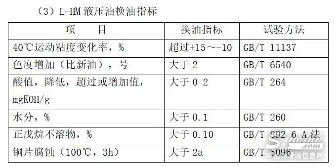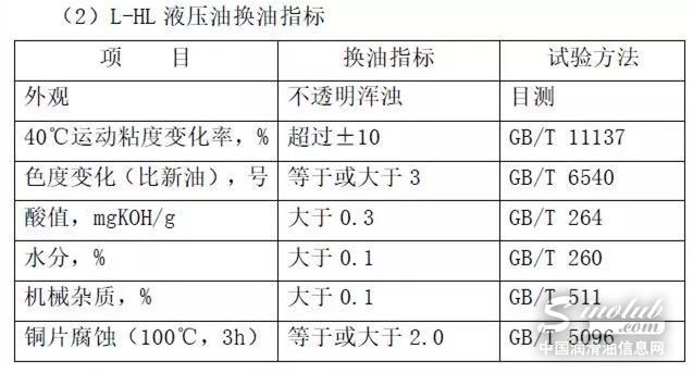 液压油在使用中由于它种油品的混入、外界的尘土、金属碎末、锈蚀粒子和水的污染以及液压油的老化都可以急剧地降低液压油的使用寿命。所有液压油在使用中都将轻微变色,随着氧化加剧或严重污染,油品将显著变黑并且还有强烈的酸臭味,油品的外观、色度、酸值、粘度以及污染物均有变化。定期检验这些项目,就可以提早发现液压系统可能出现的问题,并及时采取相应措施,避免发生故障。我国已颁布了SH/T0476-92 L-HL液压油和SH/T0599-94 L-HM液压油换油指标。该标准规定当使用中的液压油有一项指标达到换油指标时应更换新油。这是比较科学的换油方法。但是当用户检测手段不具备时,可采用经验法定期换油,如不论油质好坏完成某一项任务时,随机器大修换油,或者定期一年、半年换油,苛刻运行条件时为三个月换油。有的液压系统要求液压油十分清洁,需采用测定液压油污染度来监控使用中液压油的清洁性。测定液压油污染的方法比较多,比较成熟的有计数法、其污染度的等级要求亦不同。
